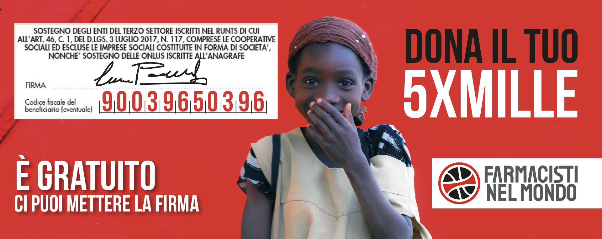 Il contributo è completamente gratuito, non occorre nulla, solo una firma sulla dichiarazione dei redditi e l’indicazione del Codice Fiscale dell’associazione Farmacisti nel Mondo Odv.